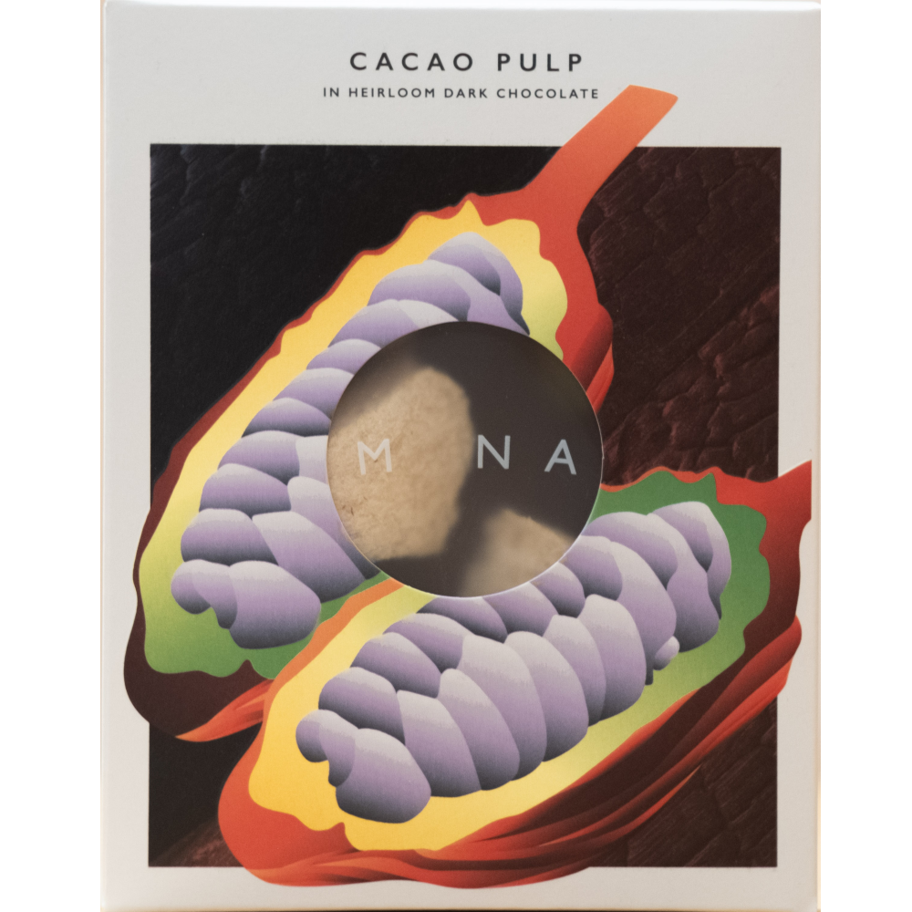 Heirloom dark chocolate crafted with 70% white cacao beans, with dried cacao pulp. The pulp — the sweet, citrusy white mucilage that surrounds the beans — is packed with vitamins, antioxidants, and natural vibrancy.